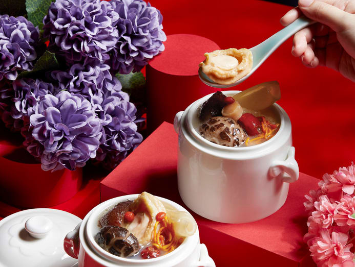 Lastly, if pencai is a must-accept on your CNY table, but about every Chinese eatery has its ain over-the-top rendition. At Yan, xviii delicacies are served in a braised duck sauce (S$325); Min Jiang has a version featuring braised spring chicken with Iberico pork rolls and abalone (South$361.66); while at Sofitel City Singapore, the Magnifique Pen Cai (from Southward$388) harbours a base of truffle-braised cabbage. It'south really a question of how lavishly you lot desire your treasure pot to runneth over.